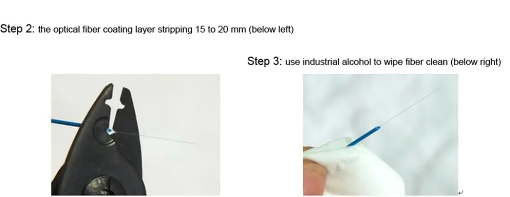 1 capa de recubrimiento pelado de fibra es de aproximadamente 15-20mm, enjuague con alcohol y limpie el papel;