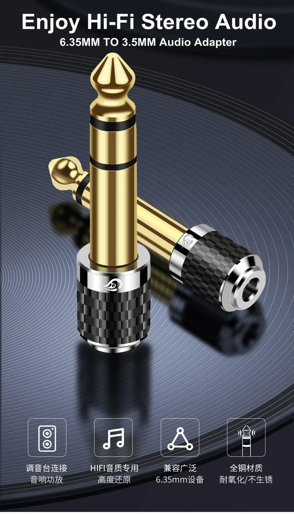 Comprar Conector adaptador Jack de 6,35mm a 3,5mm, amplificador de auriculares, adaptador de Audio, micrófono, altavoz auxiliar, guitarra, conector Jack de 6,35 y 6,5 a 3,5