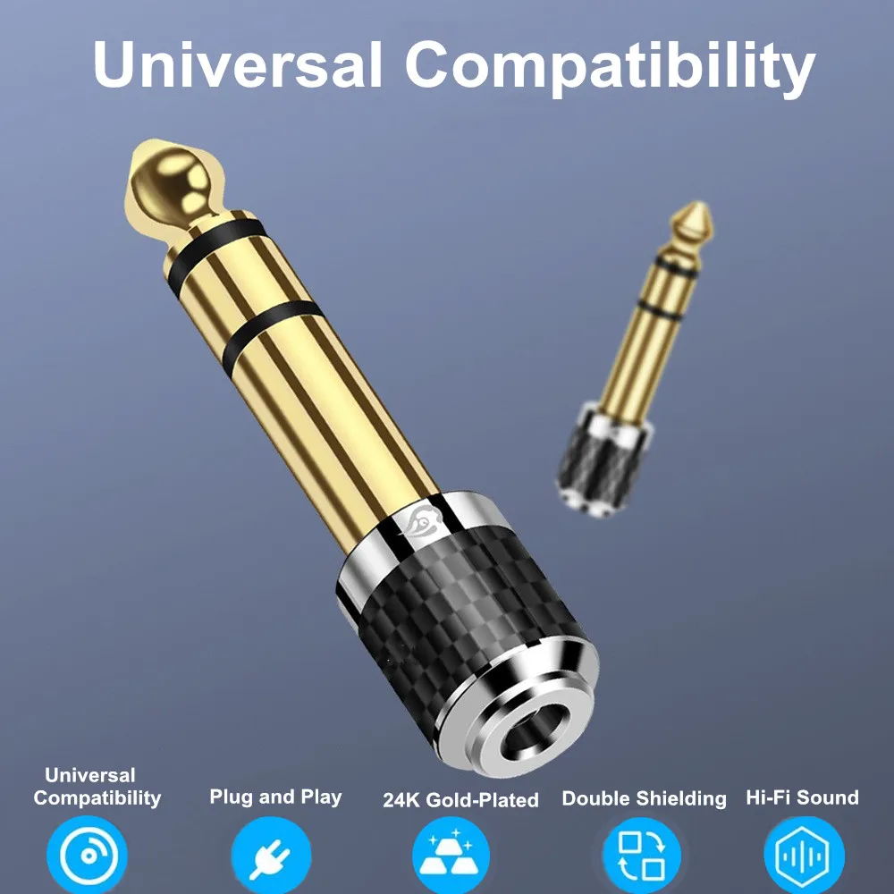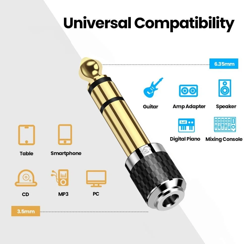 Los adaptadores de conector de Audio de 1/4 "a 3,5mm permiten que un puerto estéreo de 6,35mm conecte un cable auxiliar de enchufe de 3,5mm