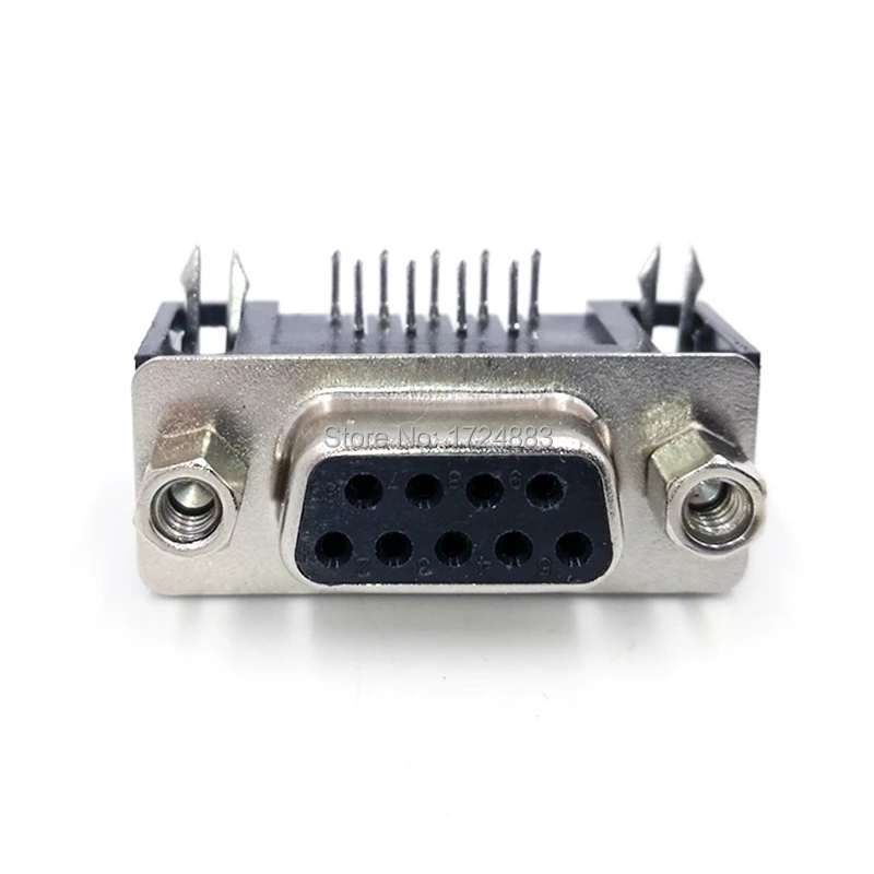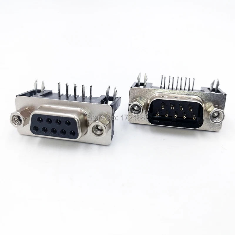 Comprar Conector adaptador de PCB DB9 RS232, conector de cable de datos de ángulo de serie 90, enchufe Com, puerto de agujero de 9 pines, hembra y macho, tipo D