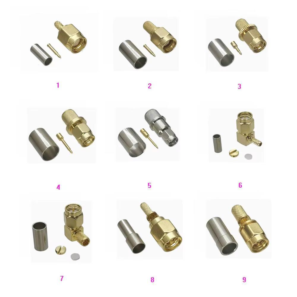 Conector adaptador RF SMA macho de crimpado RG316 RG174 LMR100 / RG58 RG142 LMR195 / RG8X LMR240 / RG5 RG6 / RG8 LMR400 de 1 piezas