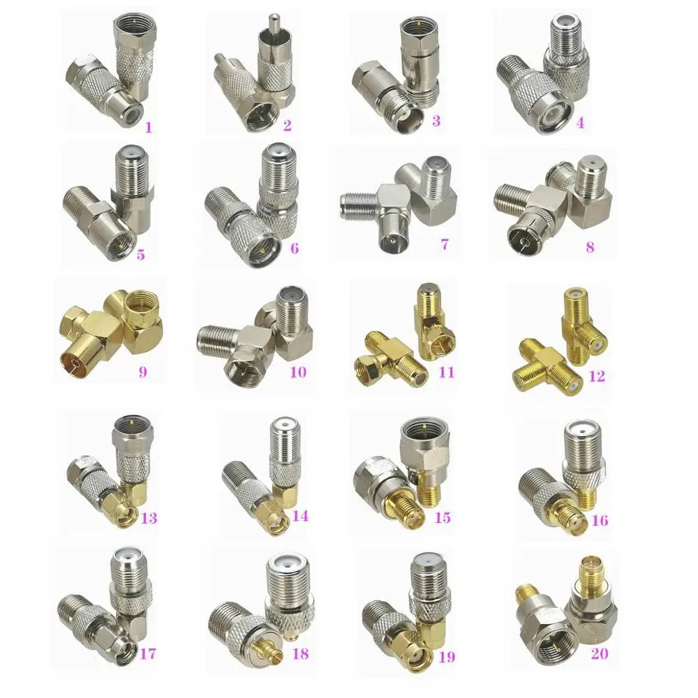 Comprar Conector adaptador de RF para TV F a RCA, TNC, FME, MiniUHF, IEC, PAL, DVB-T, F, SMA, MCX, RP-SMA, enchufe macho y hembra, 1 unidad