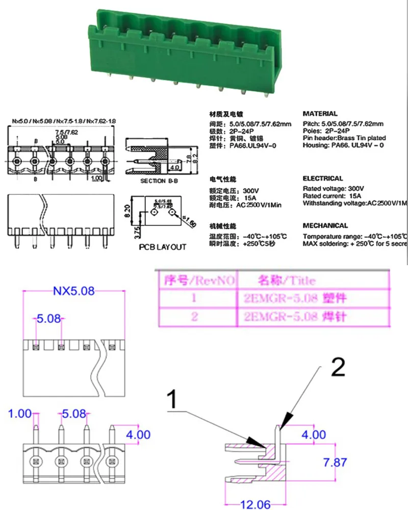 Comprar Conector de aguja recta/curva, bloque de terminales enchufable, Phoenix Contact Degson, 10 piezas, KF2EDGK 5,08 2EDG PCB, 2 pines ~ 12 Pines, 5,08 MM