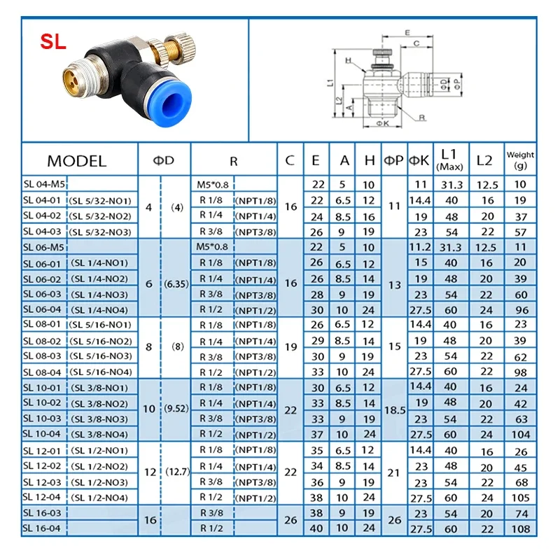 Fit For Tube Outer Diameter: 4mm 6mm 8mm 10mm 12mm