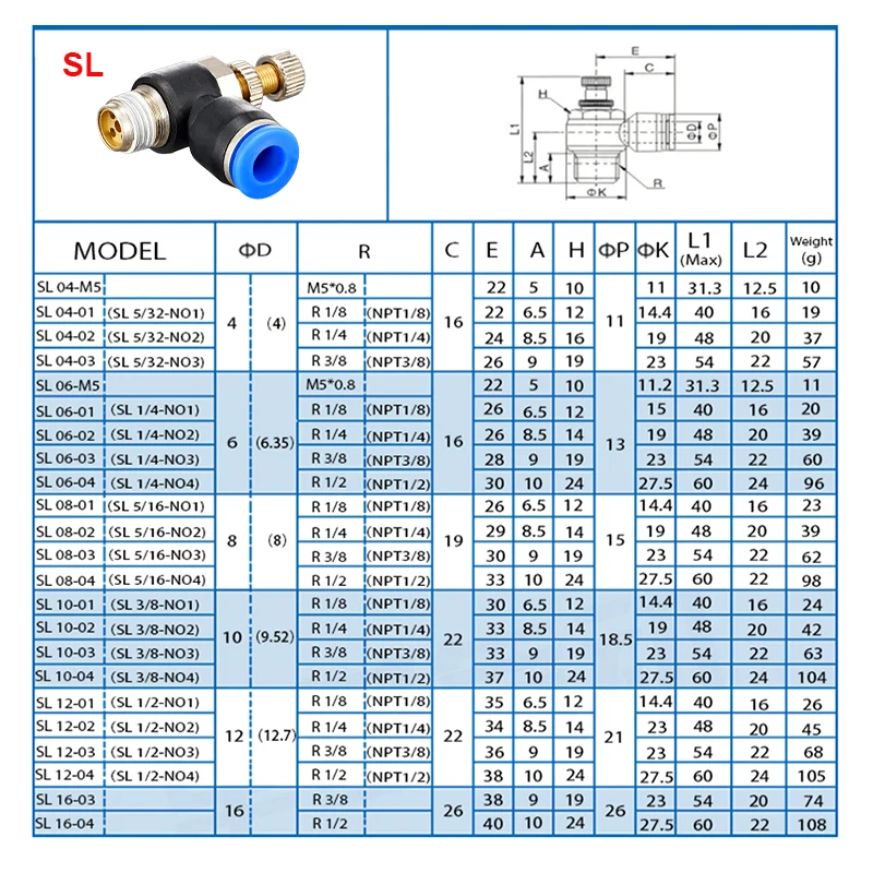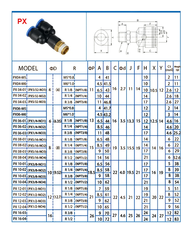 Ajuste para diámetro exterior del tubo: 4 mm 6 mm 8 mm 10 mm 12 mm