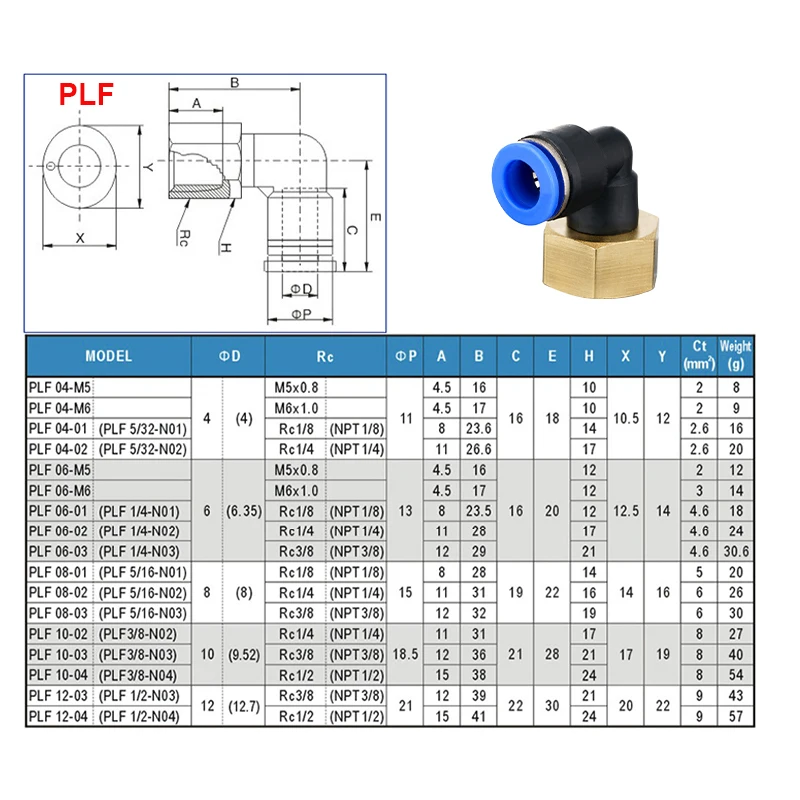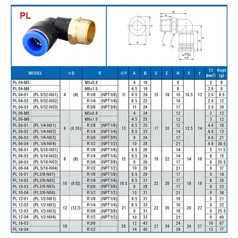 Tamaño de rosca macho: 1/8", 1/4", 3/8", 1/2"BSPT
