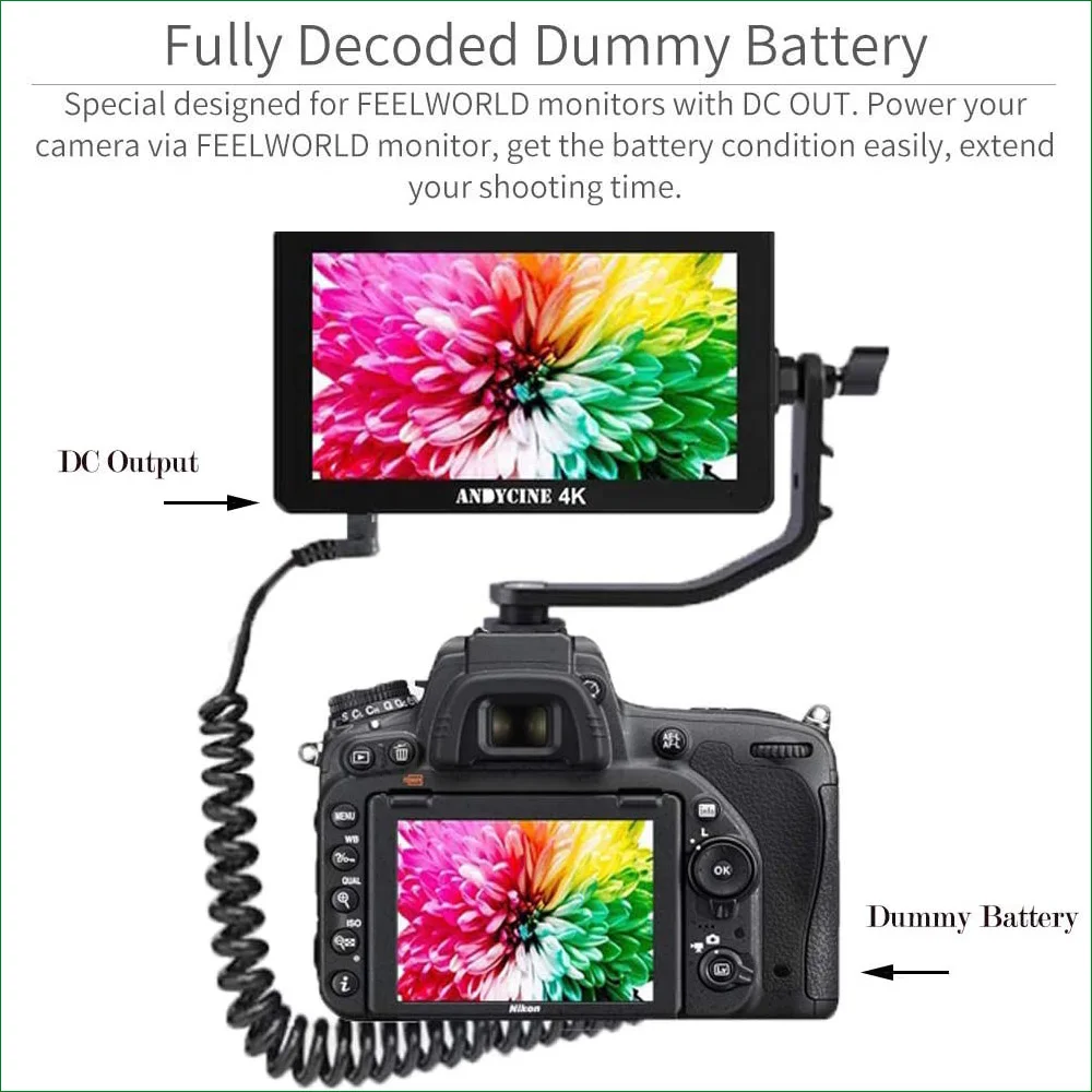 Este acoplador de CC completamente decodificado con cable Sping le permite conectarse con un banco de energía como fuente de alimentación externa para ser utilizado con la cámara, reemplazo para la batería de la NP-FW50