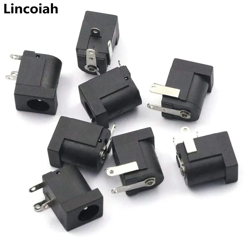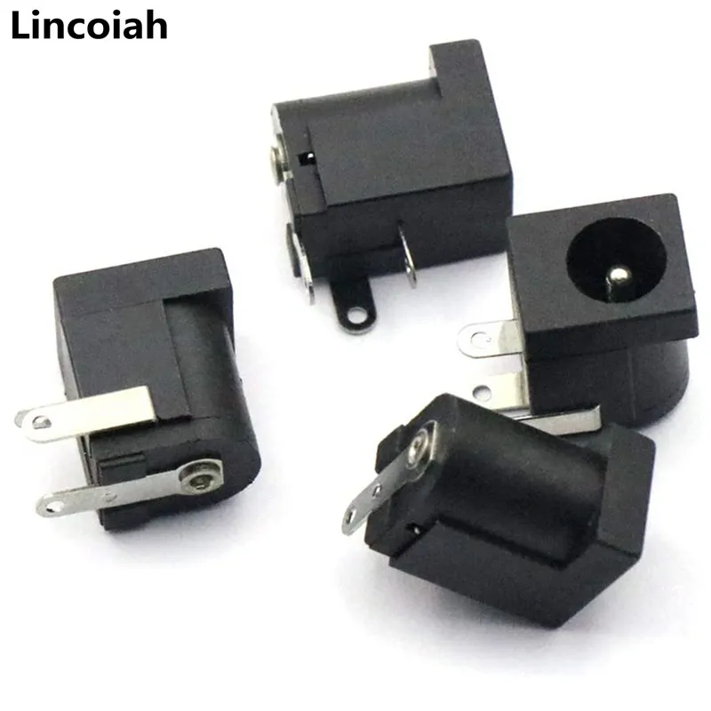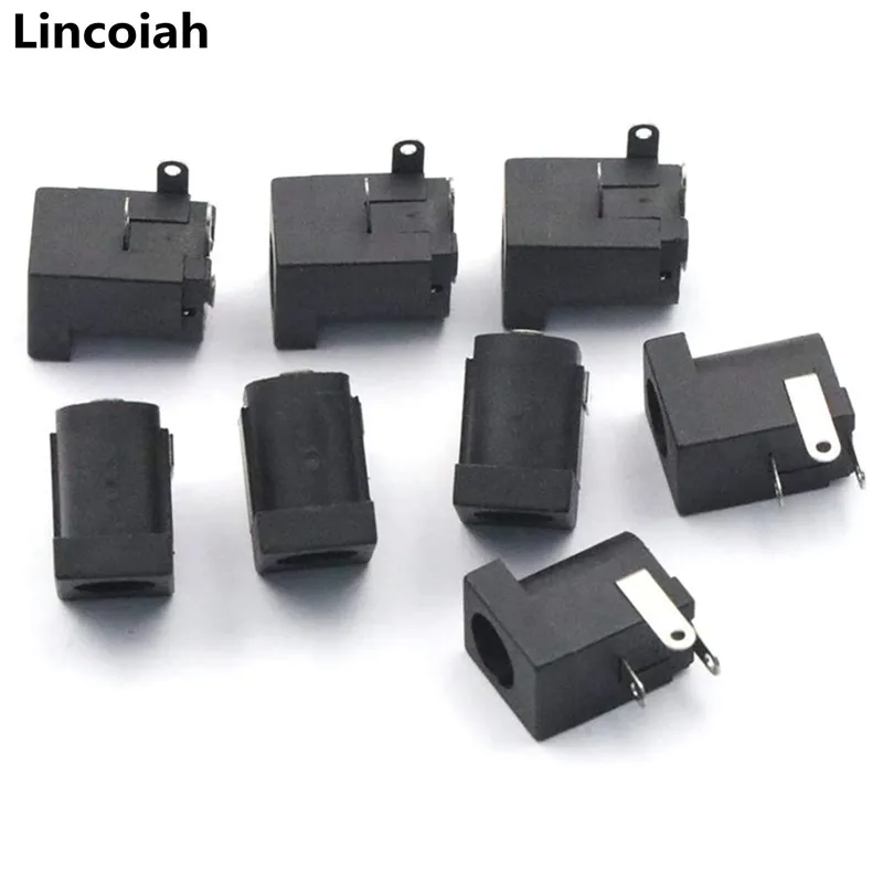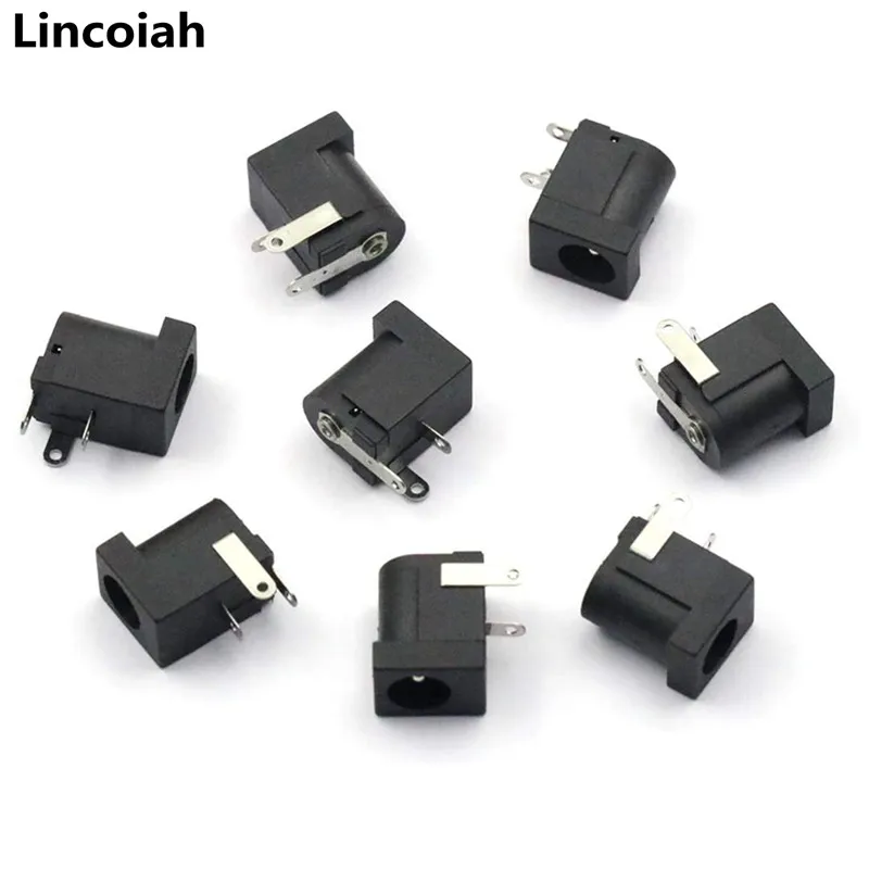 Comprar Conector de alimentación CC de 40, 20, 10, piezas, 5,5x2,1mm, negro, DC-005, conectores de CC, tipo barril, ángulo recto, Terminal de montaje PCB
