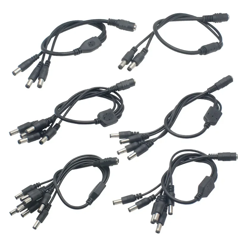 Conector de alimentación CC Cable de alimentación CC de 5,5x2,1 mm 1 hembra a 2,4,5,6,8 adaptador divisor de enchufe macho para cámara CCTV de seguridad y tira de LED