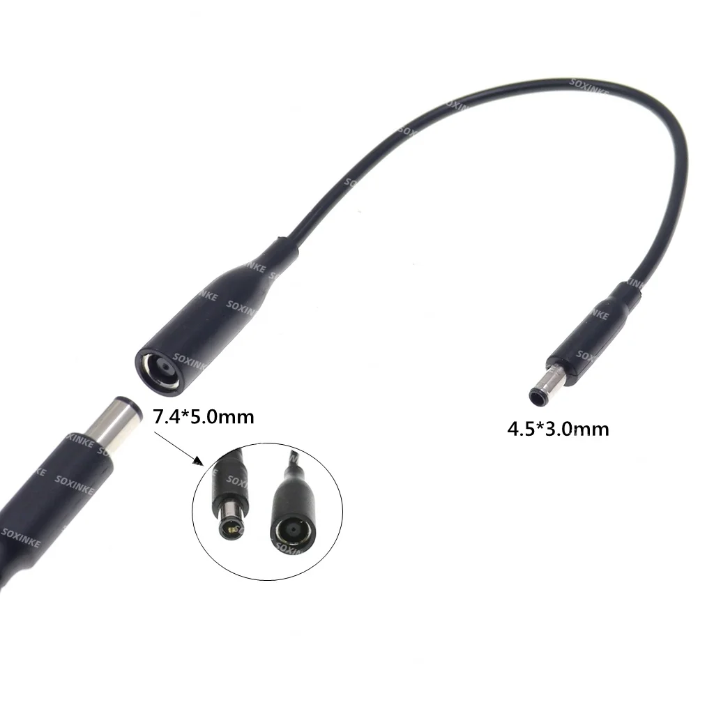 Conector de alimentación CC 7,4x5.0 a 4,5x3.0 Adaptador convertidor Cable de carga para computadora portátil 30 cm para Dell Vostro 5502 5510 5390 3500 XPS 12 13 9360
