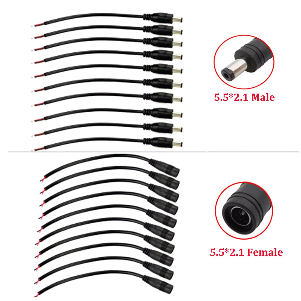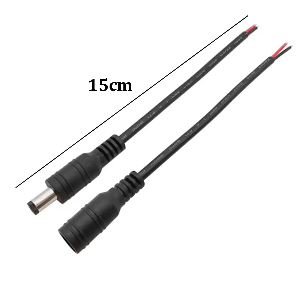 Conector de alimentación CC, Cable de enchufe de barril pigtail, 2,1mm x 5,5mm, macho, hembra, 15CM para cámara IP, adaptador de fuente de alimentación, tira de LED