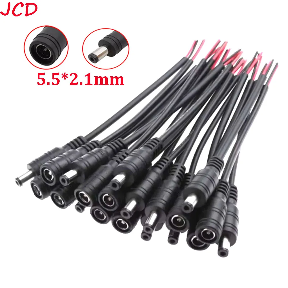 Conector de alimentación CC, Cable de enchufe de barril pigtail, 2,1mm x 5,5mm, macho, hembra, 15CM para cámara IP, adaptador de fuente de alimentación, tira de LED