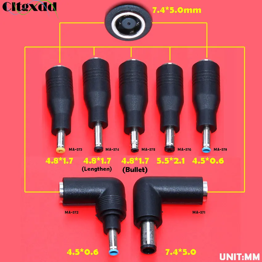 Comprar Conector de alimentación de CC hembra, adaptador de 5,5x2,1/4,5x0,6/4,8x1,7/7,4x5,0 macho a 7,4x5,0/7,4x0,6, 1 unidad