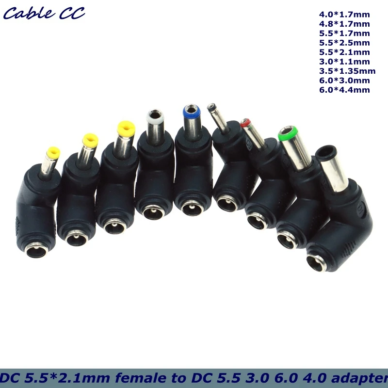 Comprar Conector de alimentación CC macho de 90 grados, 5,5x2,1 hembra a 5,5x2,5, 5,5x2,1, 5,5x1,7, 4,8x1,7, 1,7x4,0, 3,5x1,35, 3,0x1,1mm
