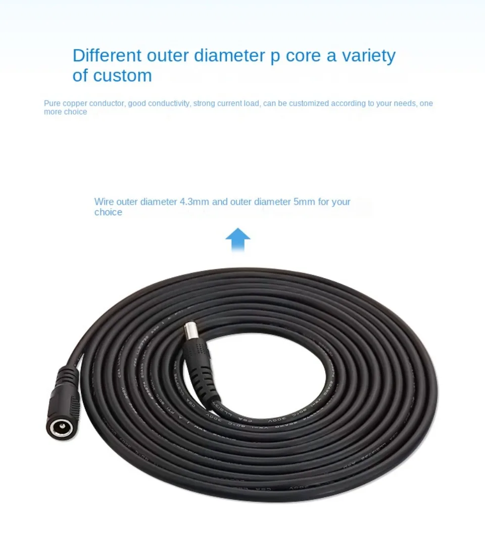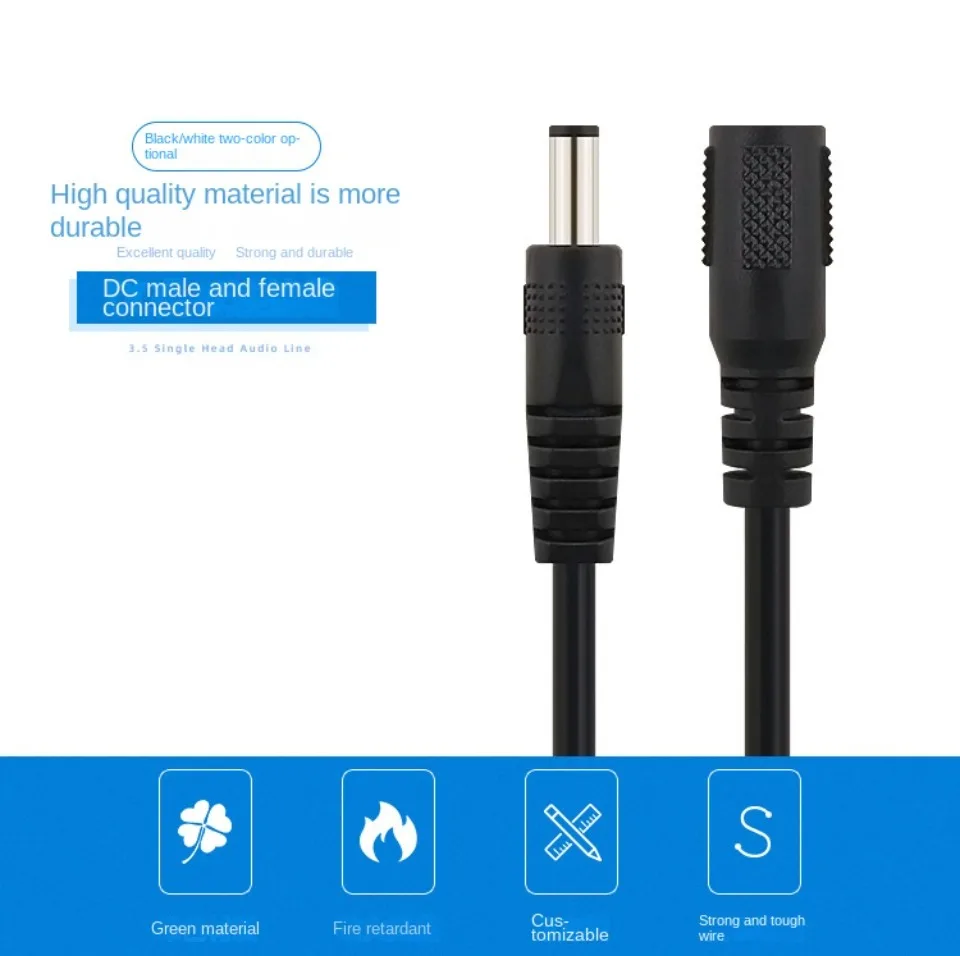 This DC power extension cable (Male to Female), cable be used to extend the power for applications such as CCTV, Transformers etc
