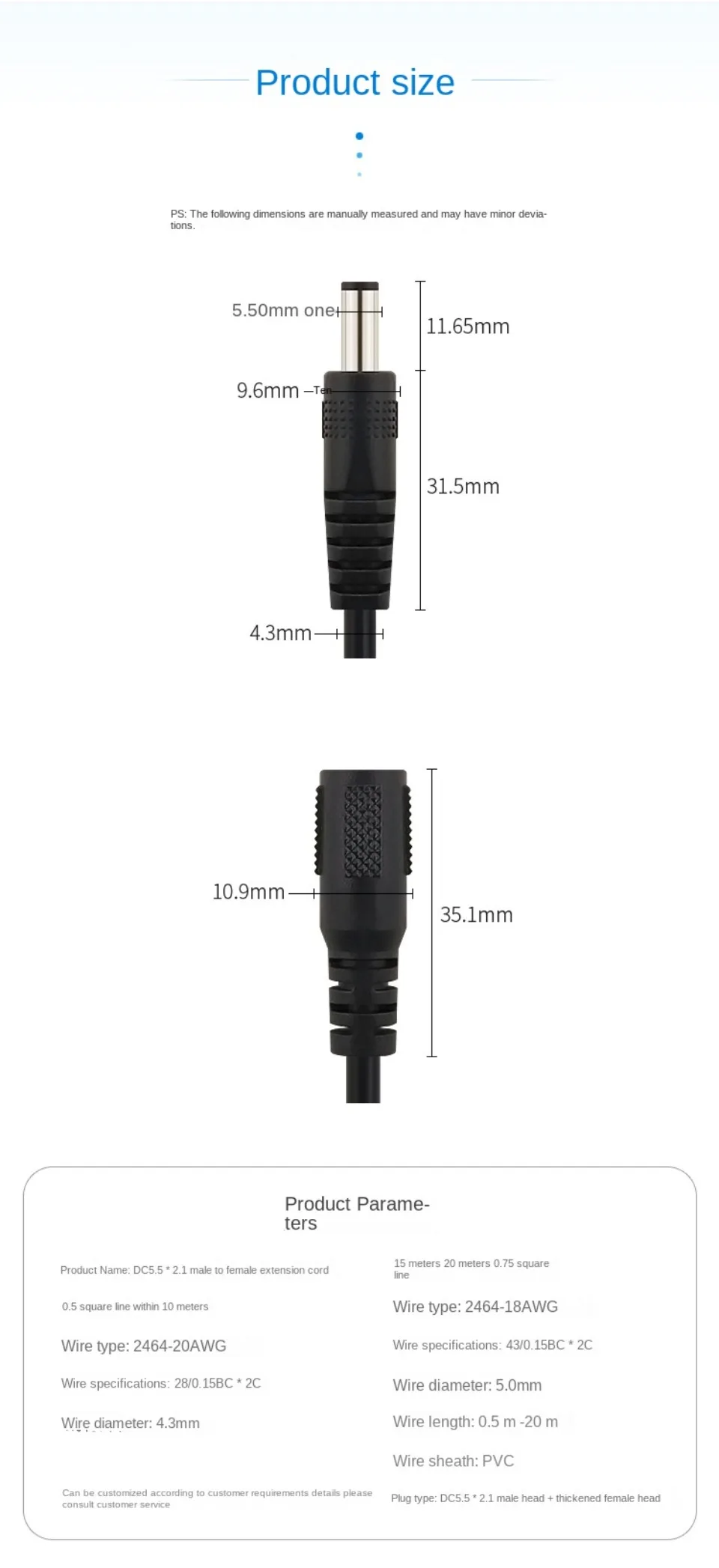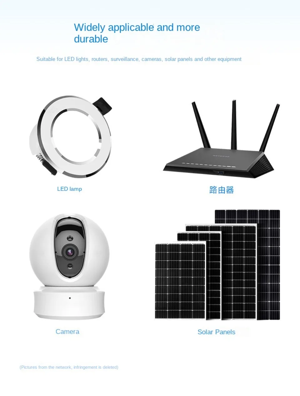 3.Applicable to the Interface for 5.5mmx2.1mm Device, such as a Laptop Computer, Cameras, Ordinary Household Electric Appliances etc..
