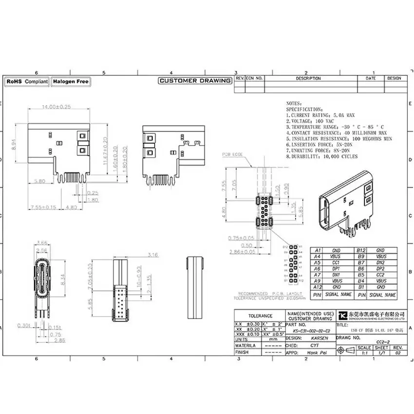 Comprar Conector de alimentación USB 3,1 tipo C, conector de enchufe hembra Vertical de 14 pines, PD, carga rápida de alta corriente