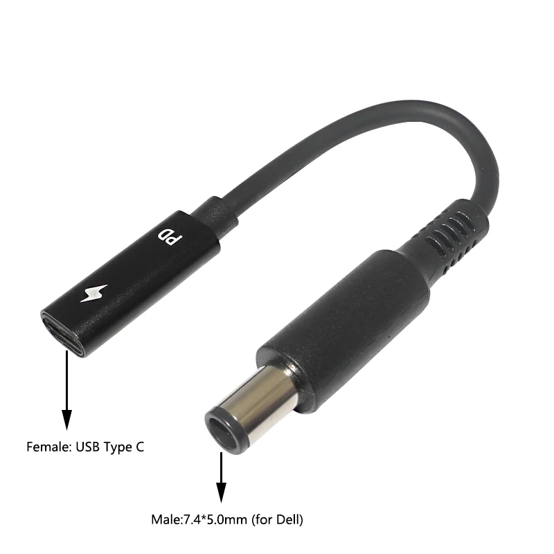 Comprar Conector de alimentación USB tipo C para Dell USB-C, convertidor de enchufe macho de 7,4x5,0mm, Cable conector de cargador de ordenador portátil para Dell Latitude