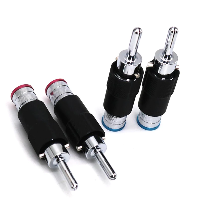4 piezas Hi-end rodio plateado Audio Video altavoz Jack 8mm autoblocante macho Banana Plug altavoz interconector cale conector