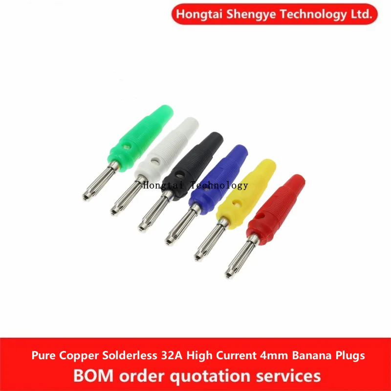 Comprar Conector de alto voltaje sin soldadura de cobre puro 32A, Conector de alta corriente de 4mm, enchufe Banana, Cable de altavoz, cabeza Banana, rojo y negro