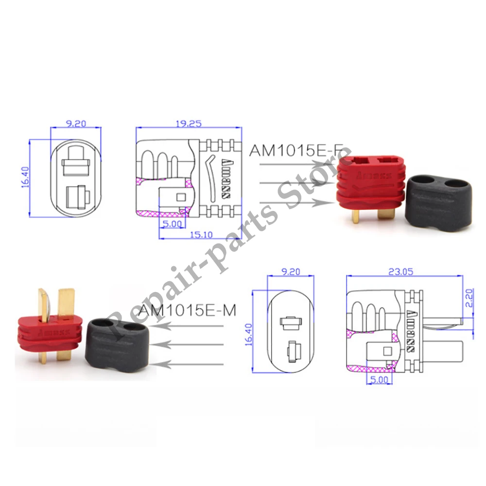 Conector Amass T de 5 pares, enchufe Deans con cubierta, conector macho hembra Amass Deans con carcasa para juguetes de batería RC Lipo