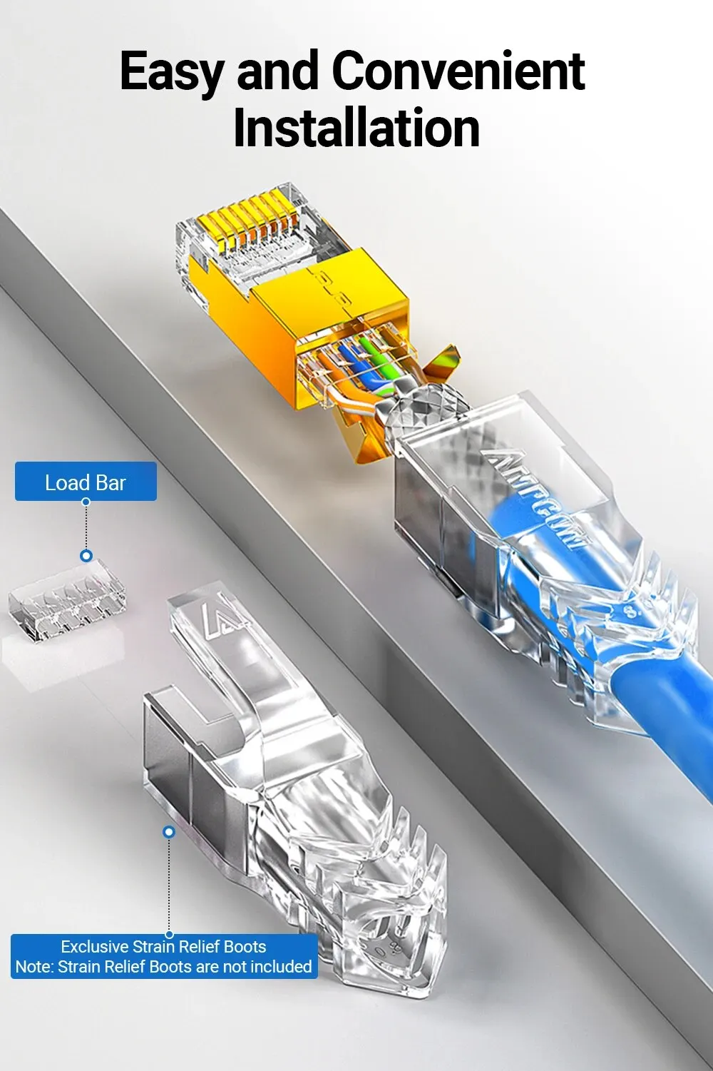 4.La barra de carga con tamaño de orificio OD de 1,5 mm permite a los usuarios preinsertar los conductores antes de conectarlos al cuerpo de los conectores RJ45