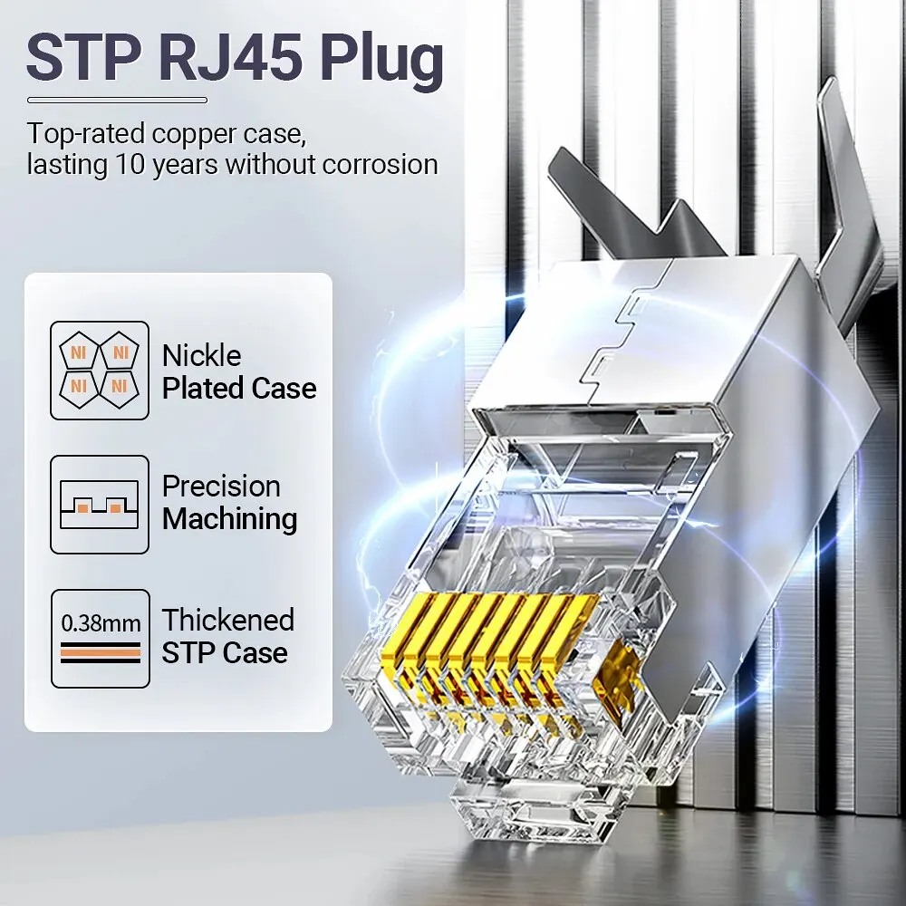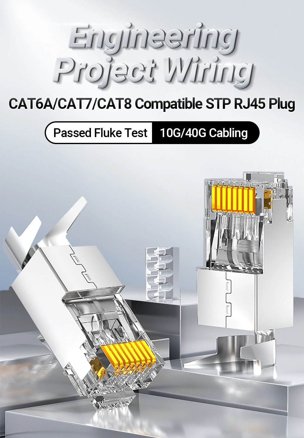 CAT6A/CAT7/CAT8 Compatible STP RJ45 Plug,Passed Fluke Test,10G/40G Cabling.