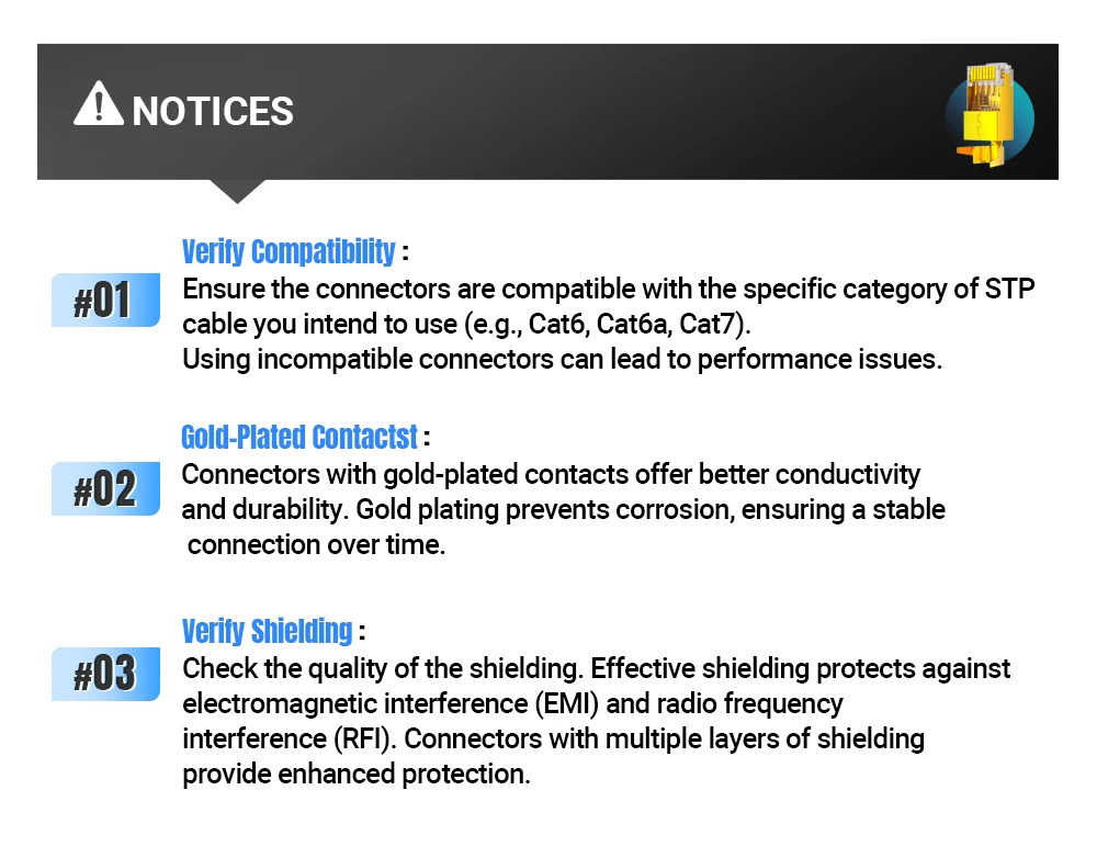 Q: How does the shielding in STP RJ45 connectors enhance performance and reliability?