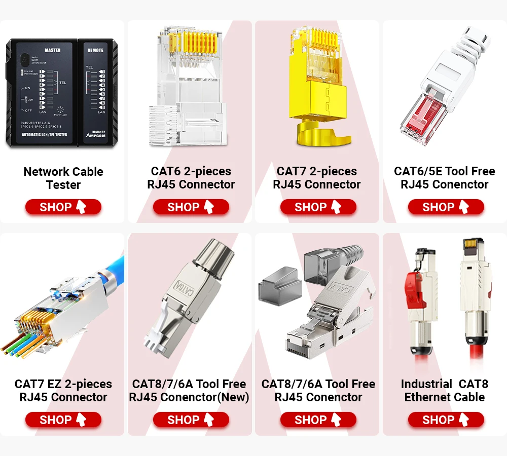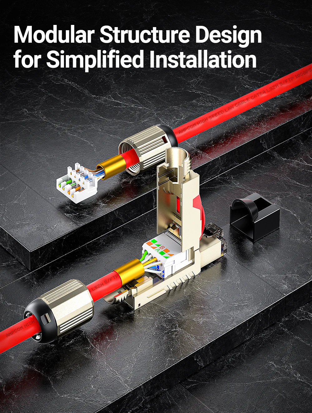 Comprar Conector AMPCOM RJ45, herramienta CAT8 STP enchufes modulares blindados gratis CAT7 CAT6A enchufe de terminación de campo de aleación de Zinc 40Gbps 2000Mhz