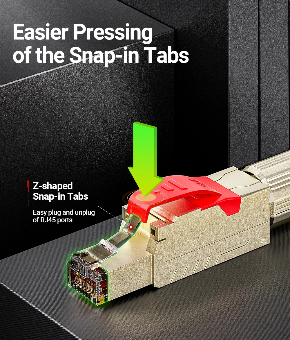 Presionar más fácilmente las pestañas Snap-inPestañas a presión en forma de Z (enchufe y desenchufe fácilmente los puertos RJ45)