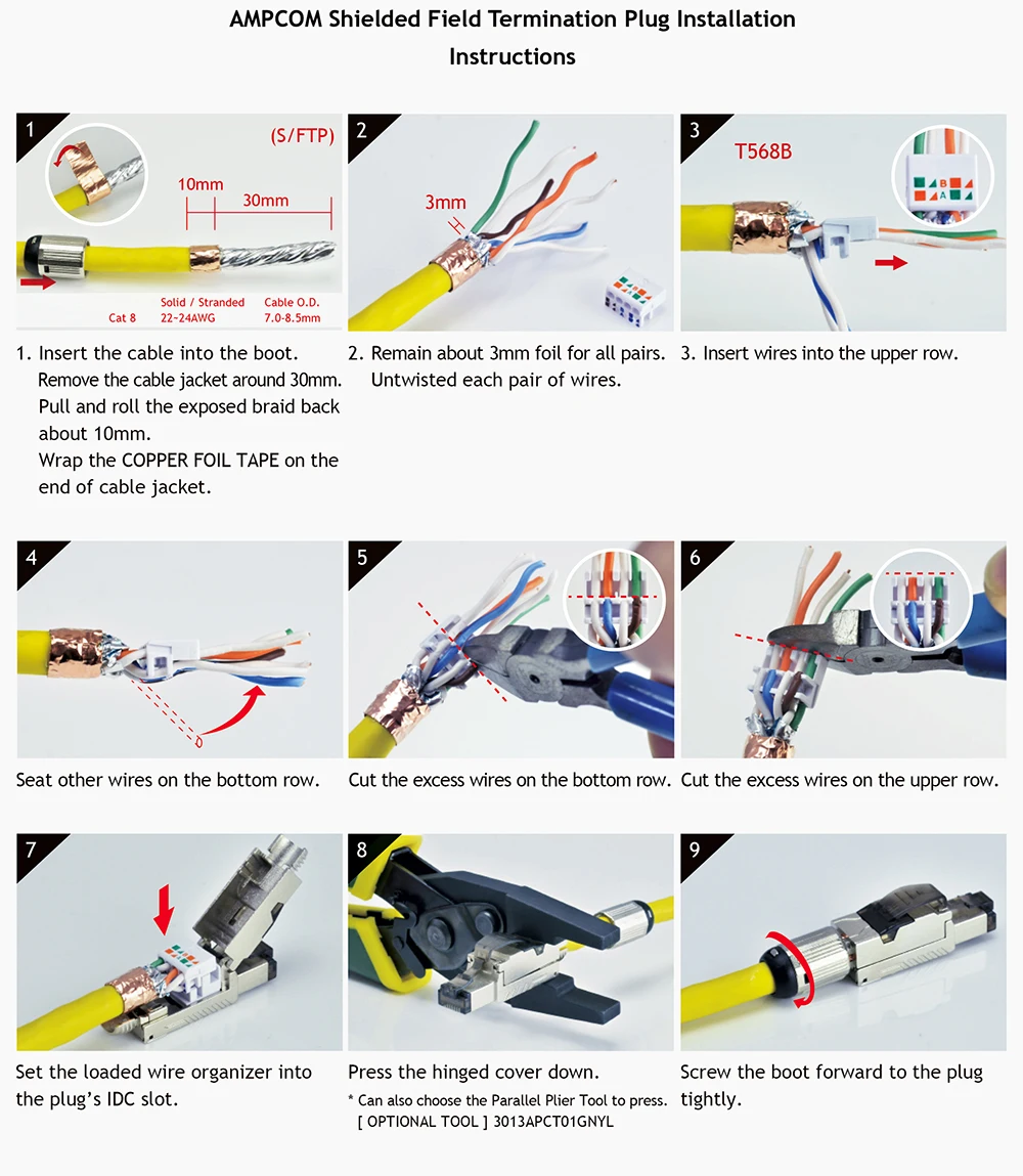 Instrucciones de instalación de enchufe de terminación de campo blindado AMPCOM