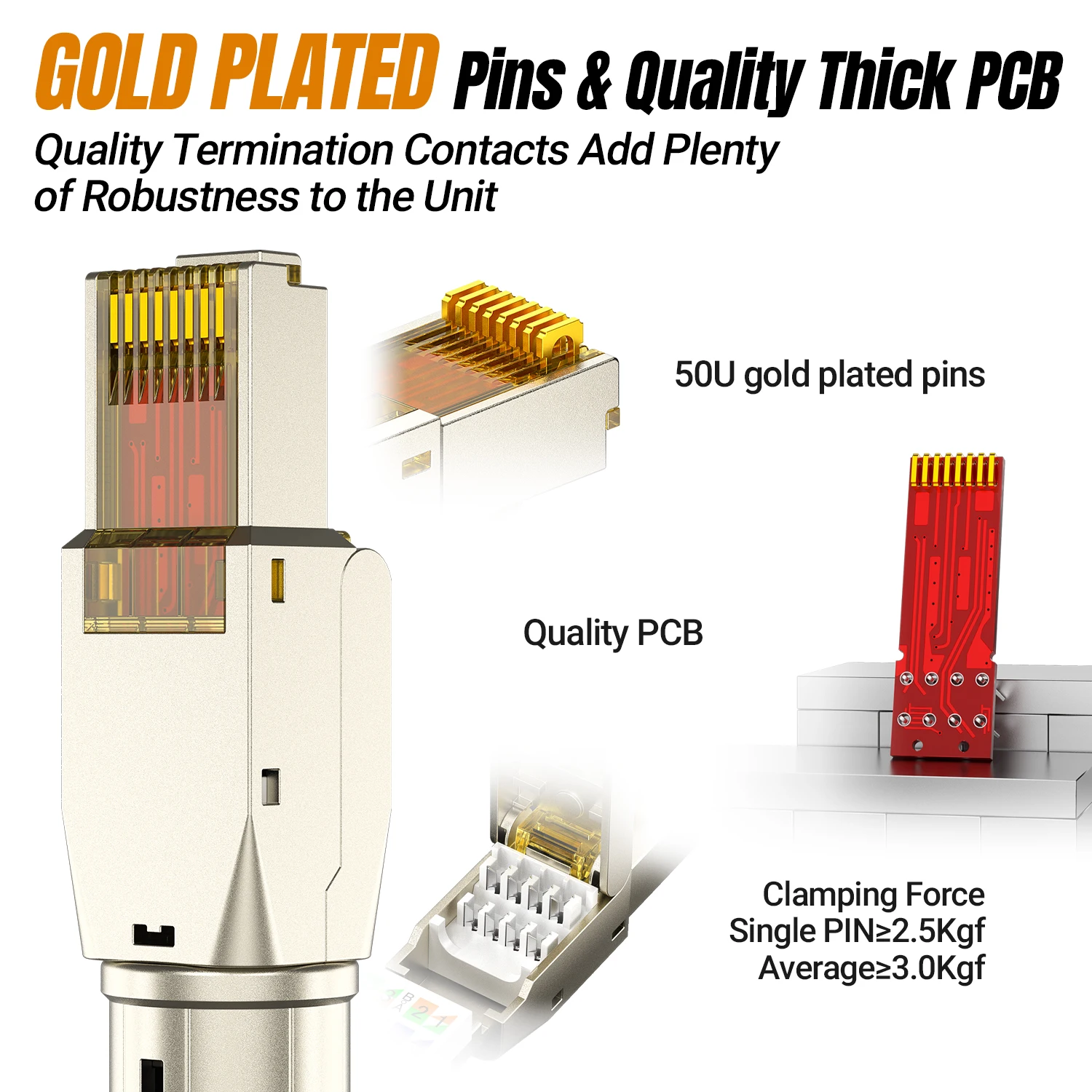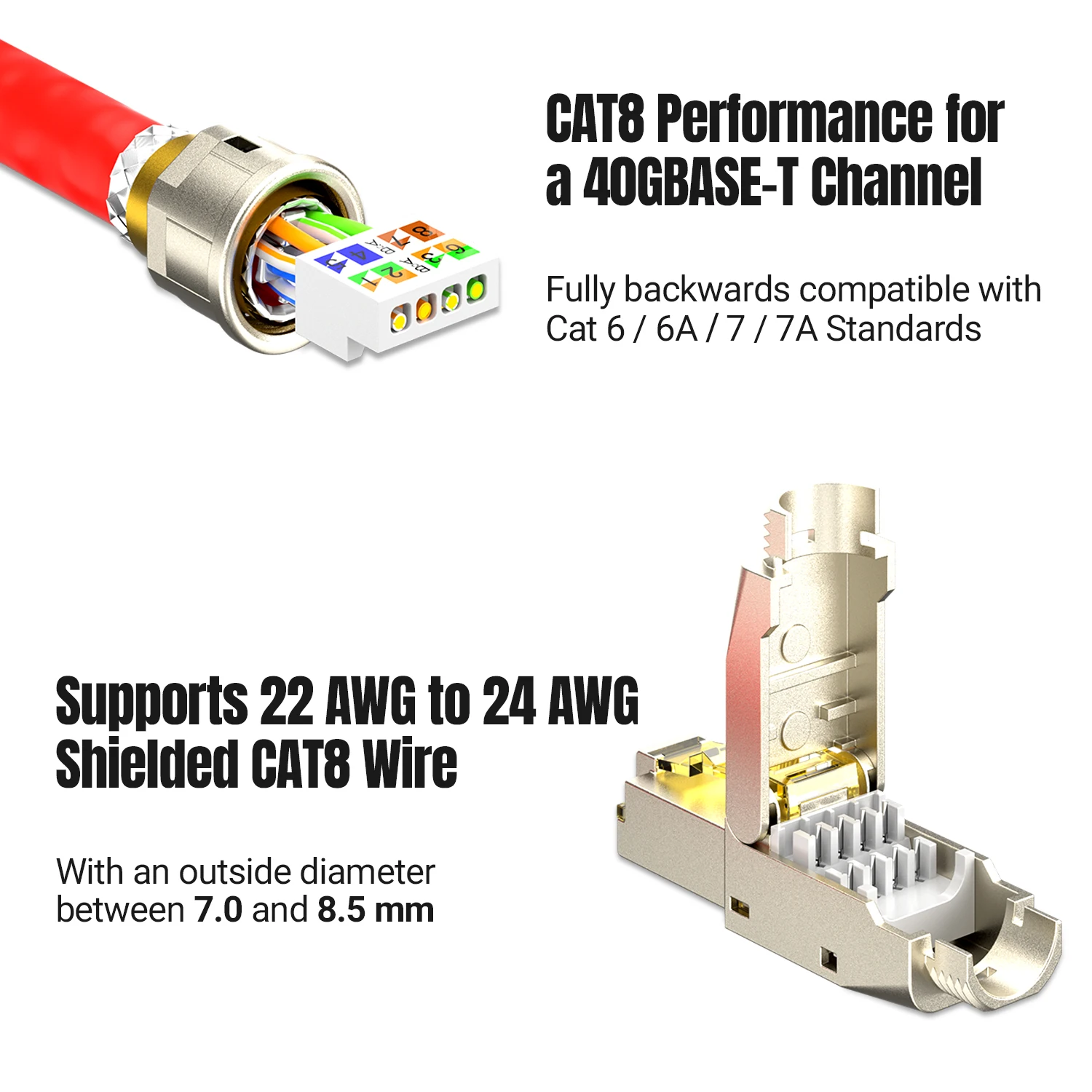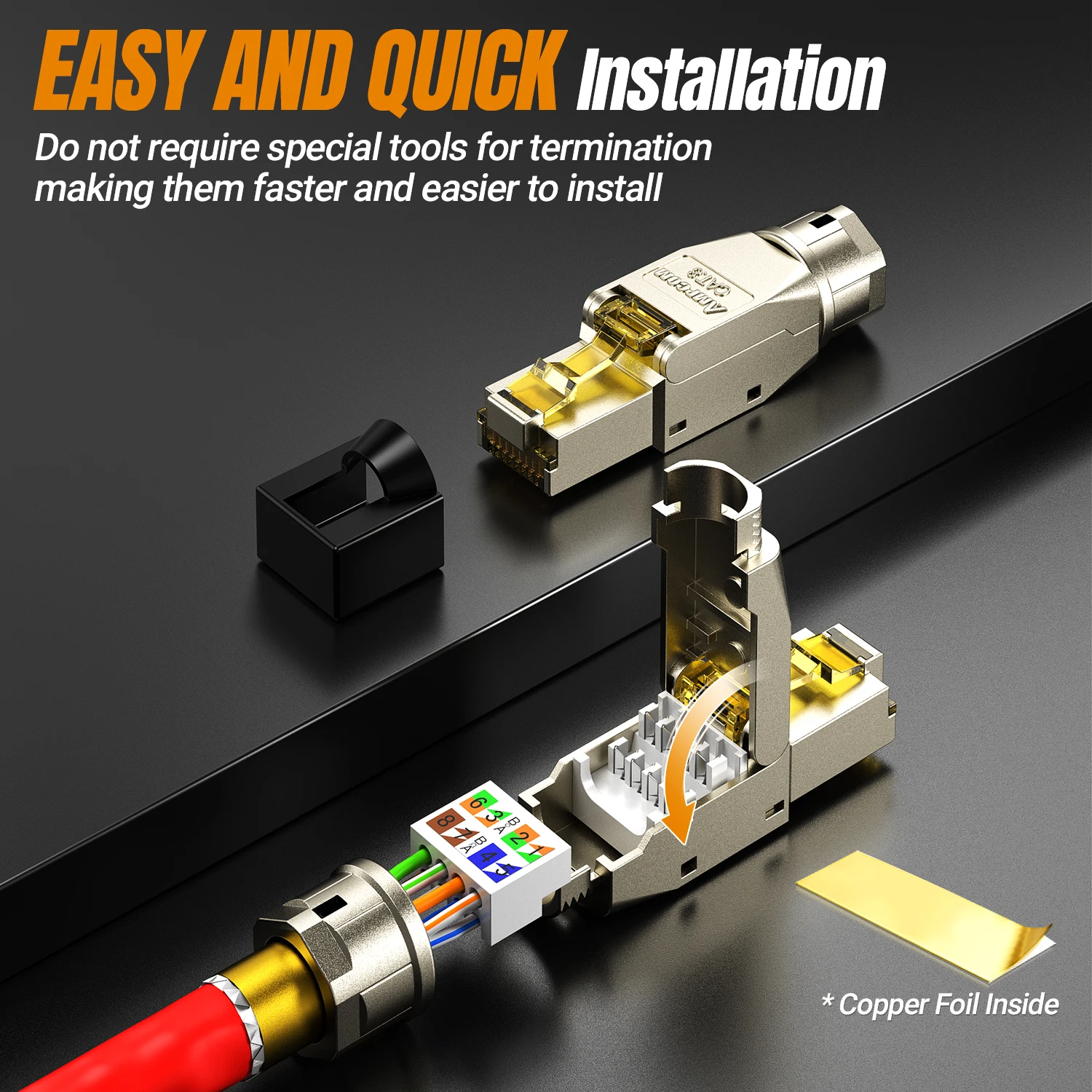 Comprar Conector AMPCOM RJ45 sin herramientas, enchufes de terminación reutilizables sin herramientas CAT8/7A/7/6A/6 enchufe Modular de campo Ethernet blindado