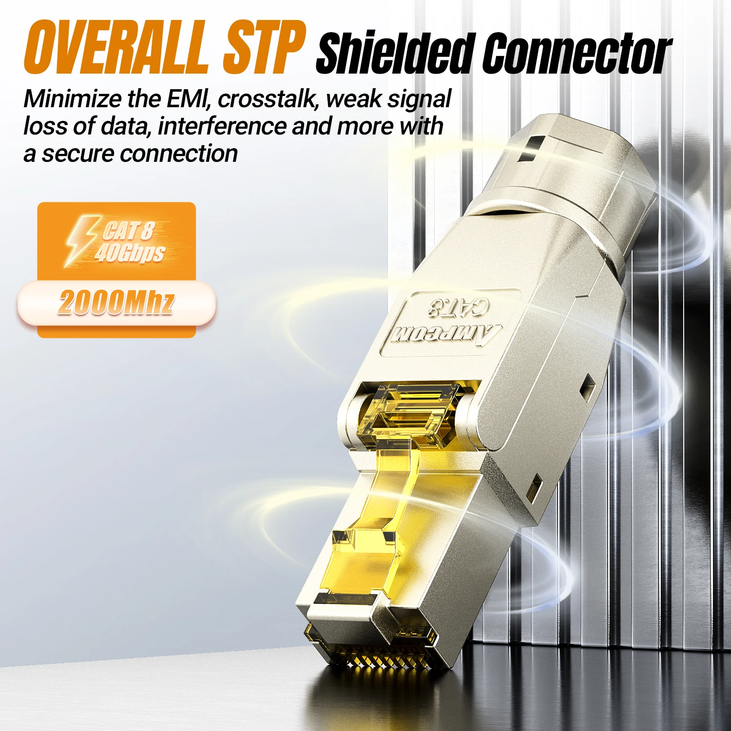 Conector RJ45 de aleación de Zinc CAT8 CAT7A CAT7 CAT6A CAT6 sin herramientas AMPCOM