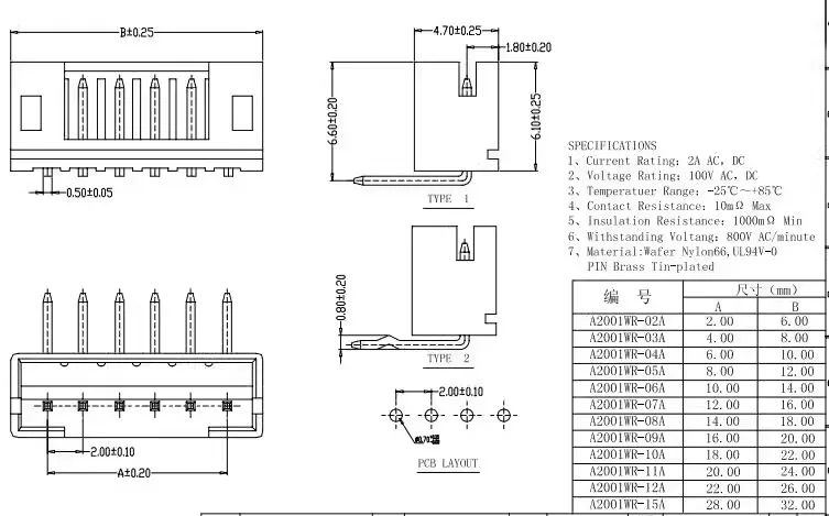 Comprar Conector de ángulo recto de aguja Looper PH2.0, 2P, 3P, 4P, 5P, 6P, 2,0mm, Pitch PH para PCB JST, 50 unidades por lote