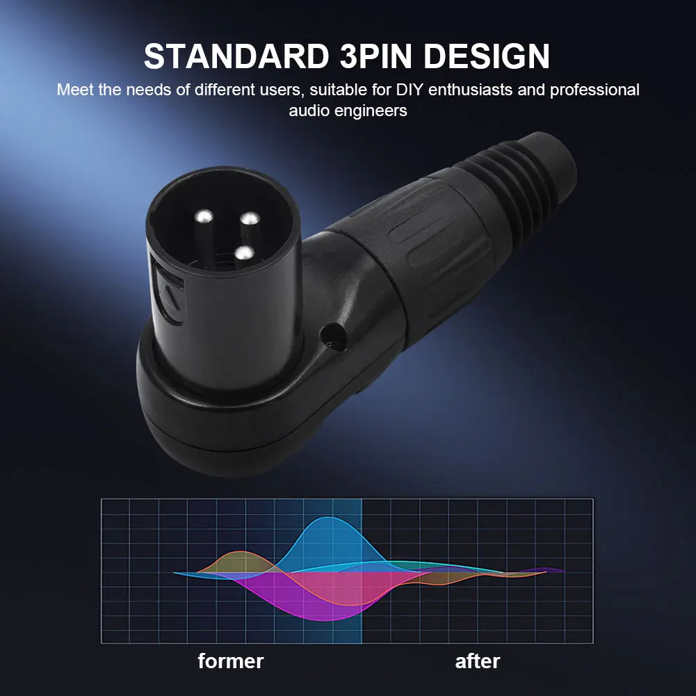 2. Standard 3PIN Design: Featuring an industry-standard 3PIN configuration, this XLR right angle connector is widely compatible with various audio devices such as microphones, audio cables, and DMX512 control lines, meeting the needs of DIY enthusiasts and professional audio engineers alike.