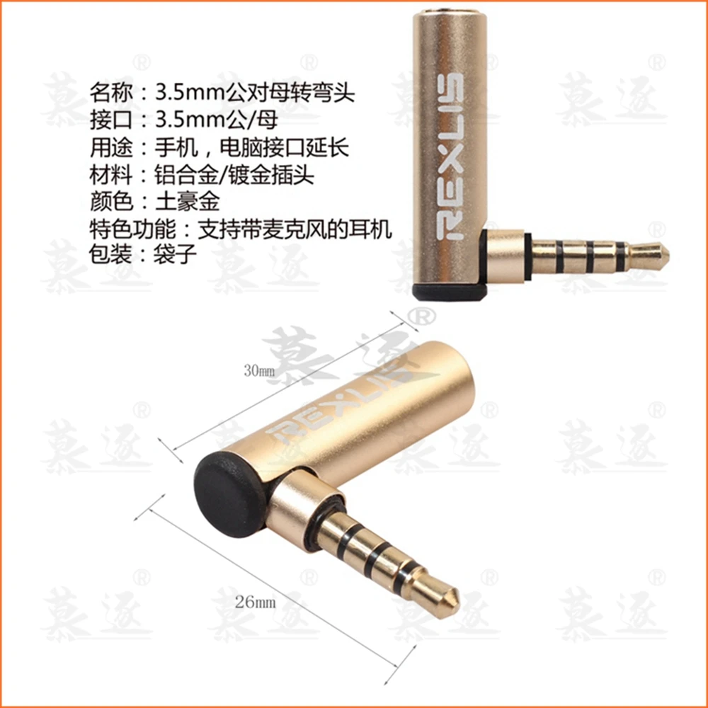 Conector de Audio de 3,5mm, conector hembra de ángulo recto de 3,5 a macho de 4 polos, conector de Audio estéreo en forma de L, conversión de auriculares de 90 grados, 1 ud.