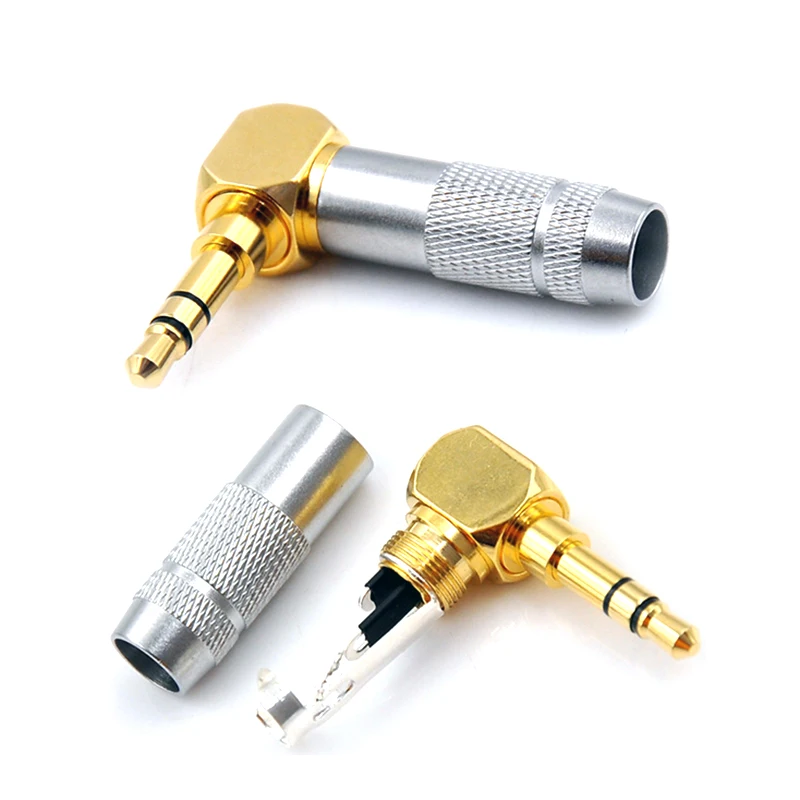 Comprar Conector de Audio de 3 polos de 3,5mm, adaptador de empalme para auriculares, conector de cable de soldadura para auriculares estéreo HiFi DIY, enchufe curvo de 90 grados