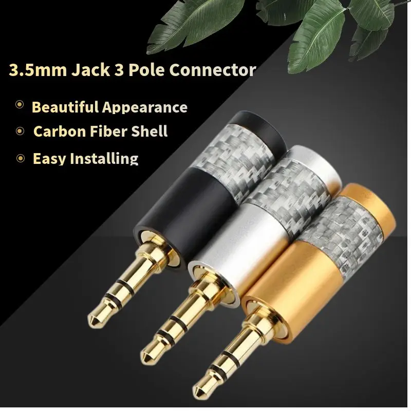 Comprar Conector de Audio de 3,5mm, carcasa de fibra de carbono para soldar, extensión de auriculares, Cable electrónico de consumo, 3 Polo 3,5