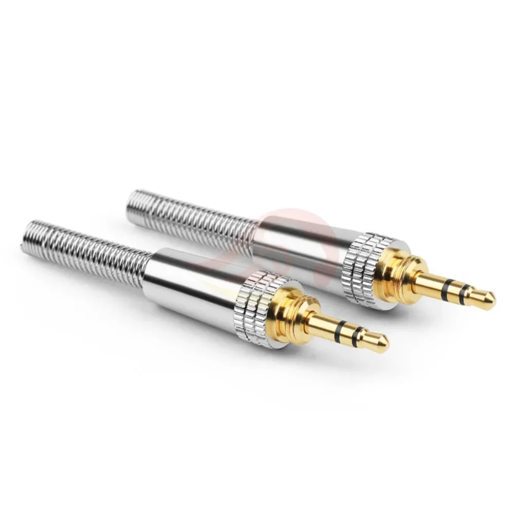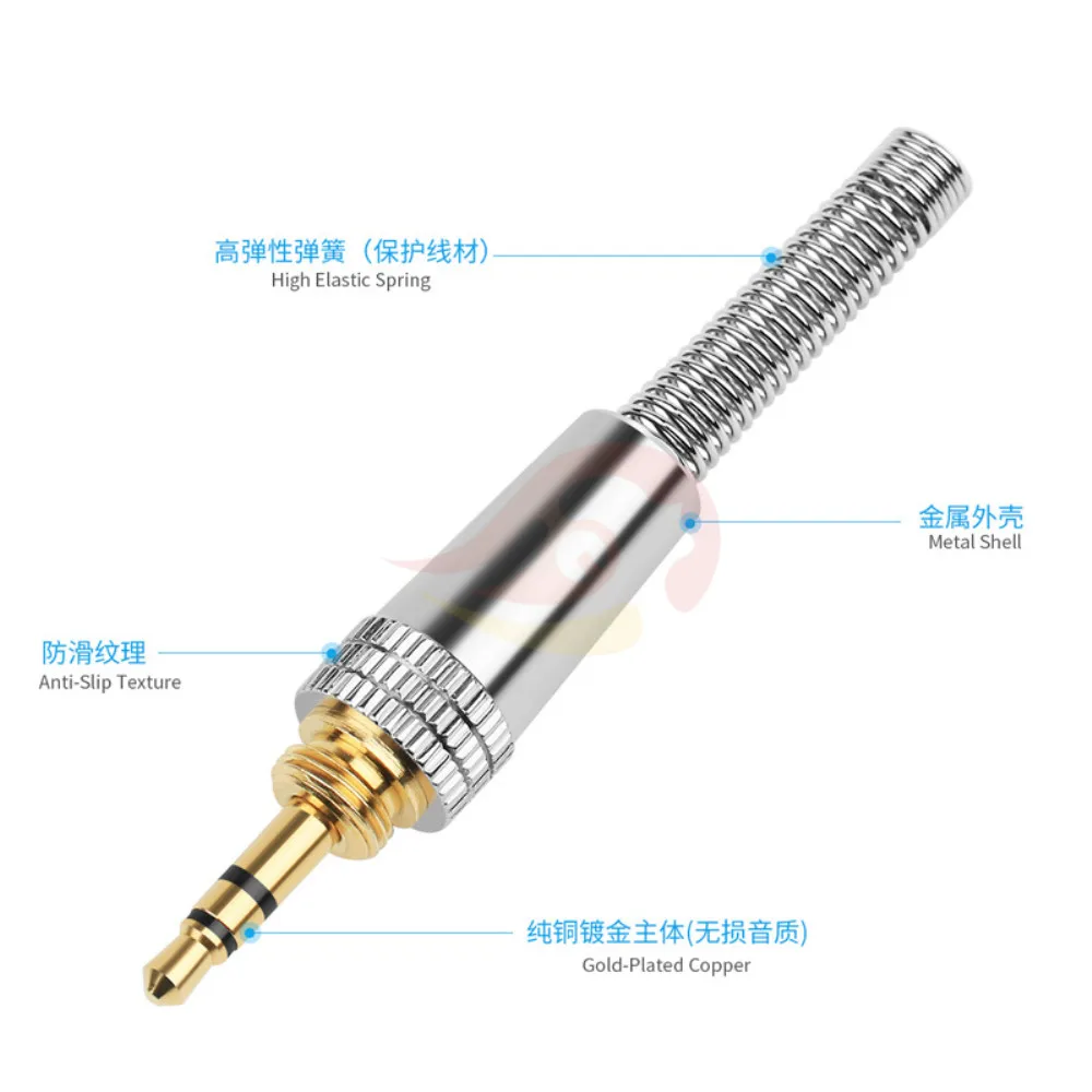 Comprar Conector de Audio de 3,5mm, Conector de auriculares Hifi 3,5, chapado en oro, estéreo, roscado frontal con adaptador de auriculares de resorte