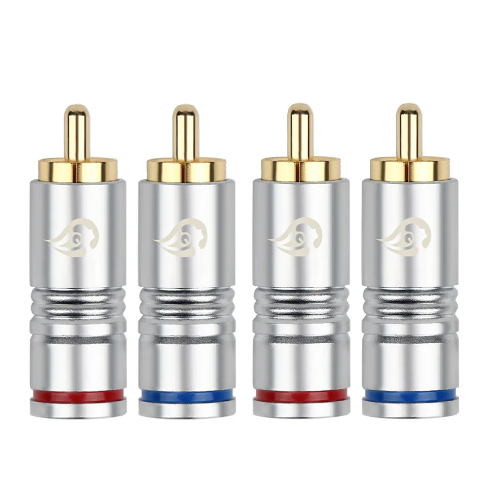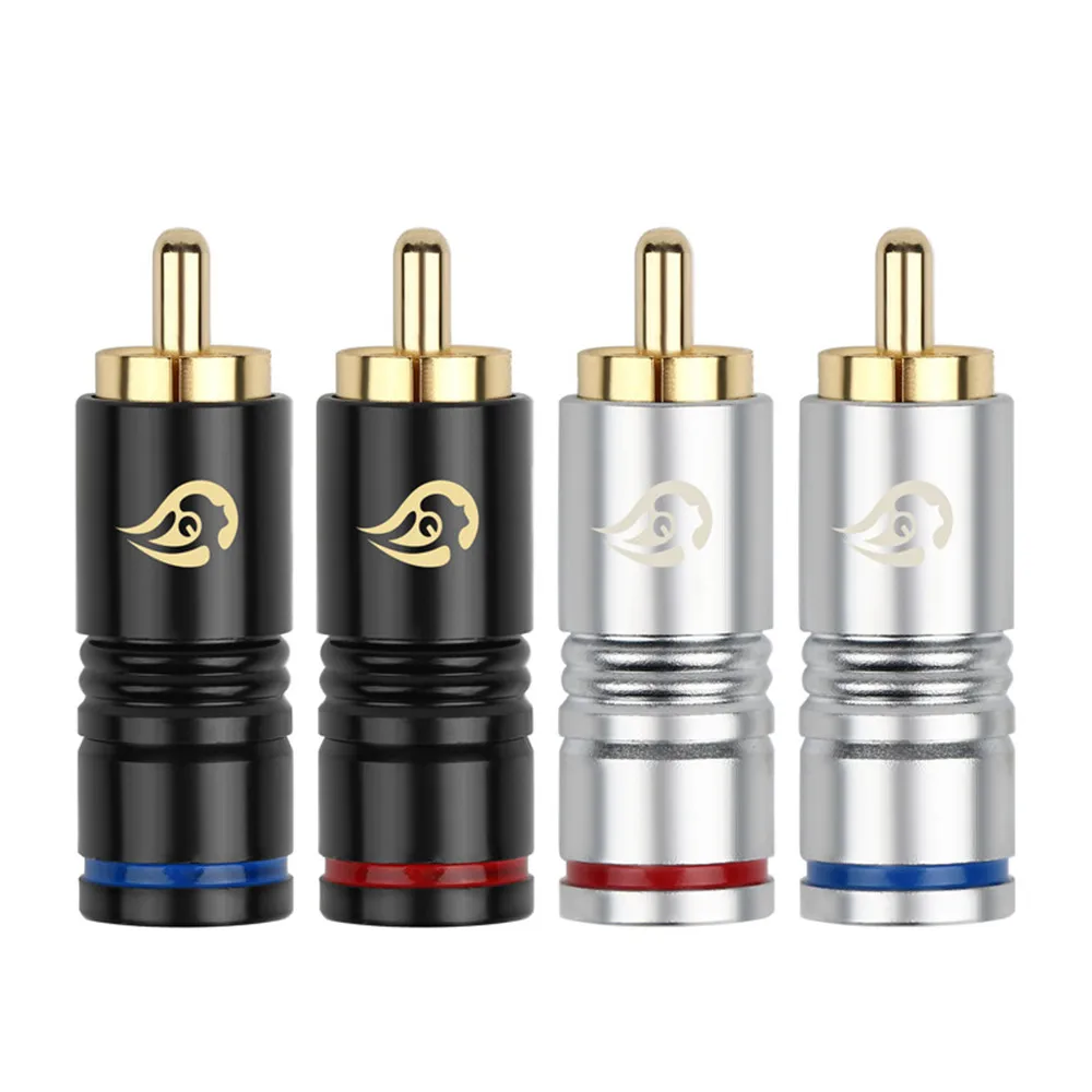 Comprar Conector de Audio para altavoz, conector RCA de 8/20/50 piezas, bloqueo de fibra de carbono HIFI, adaptadores de enchufe de línea de Audio de cobre chapado en oro de 24K