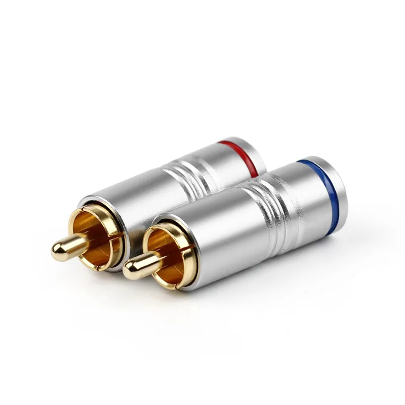 Comprar Conector de Audio para altavoz, conector RCA de 8/20/50 piezas, bloqueo de fibra de carbono HIFI, adaptadores de enchufe de línea de Audio de cobre chapado en oro de 24K