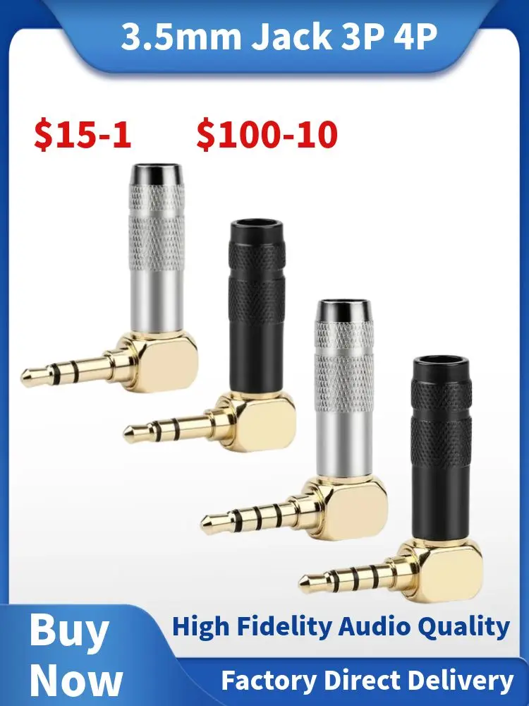 Comprar Conector de Audio para auriculares, 3,5mm, 90 grados, 3 y 4 polos, electrónica de consumo, 3,5, para soldar, actualización de Cable de auriculares