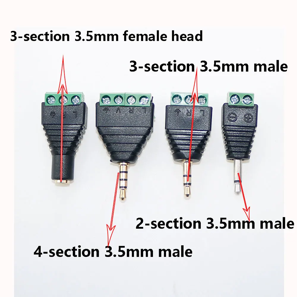 1 unidad de vídeo AV Balun 3,5mm 2/3/4 polos estéreo macho a AV Terminal de tornillo Conector estéreo 3,5mm macho 3 pin conector de enchufe de bloque de terminales