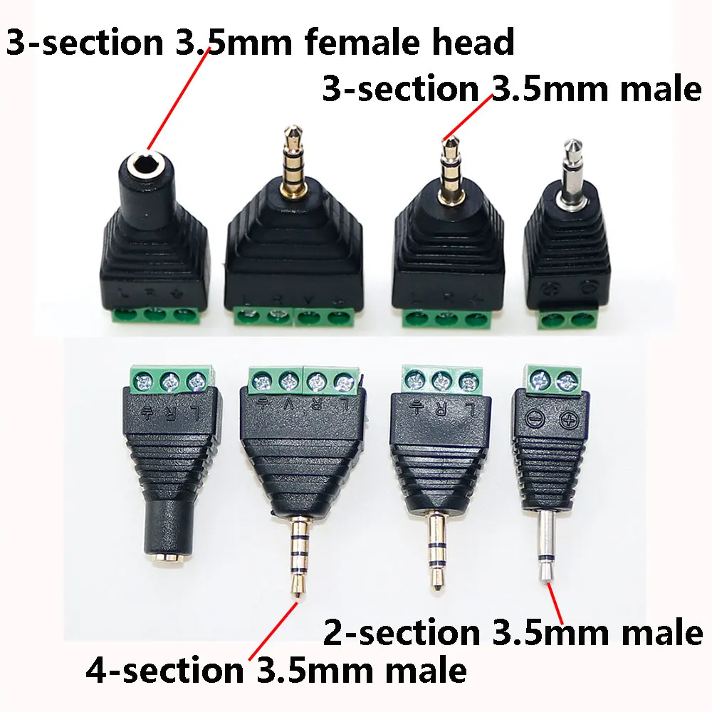 Video AV Balun 3,5mm 2/3/4 polos estéreo macho a AV tornillo Terminal estéreo Jack 3,5mm macho 3 pin bloque de terminales conector