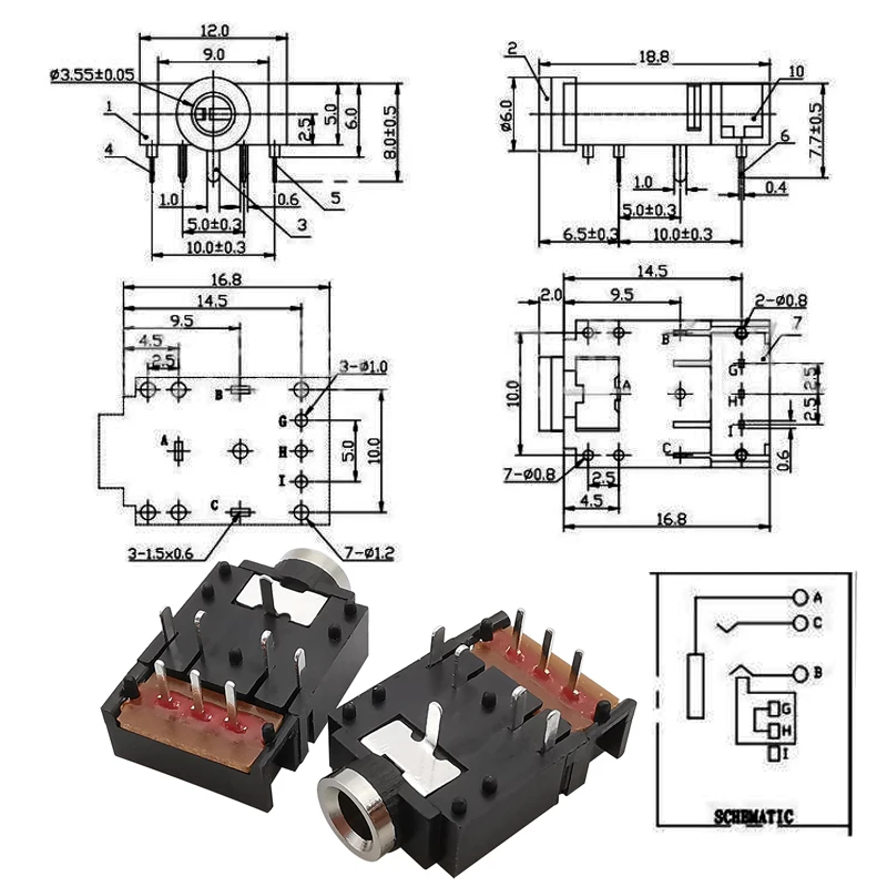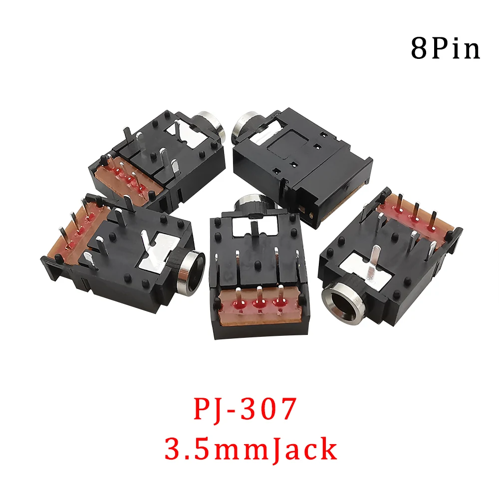 Conector hembra de 8 pines con interruptor para auriculares de audio estéreo de doble pista PJ307 de 3,5mm, 1/2/5/10/3,5mm, negro, con conector de 1/2/10/1/2/5/10 ", conector hembra de 8 pines