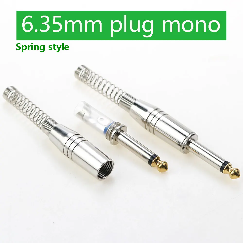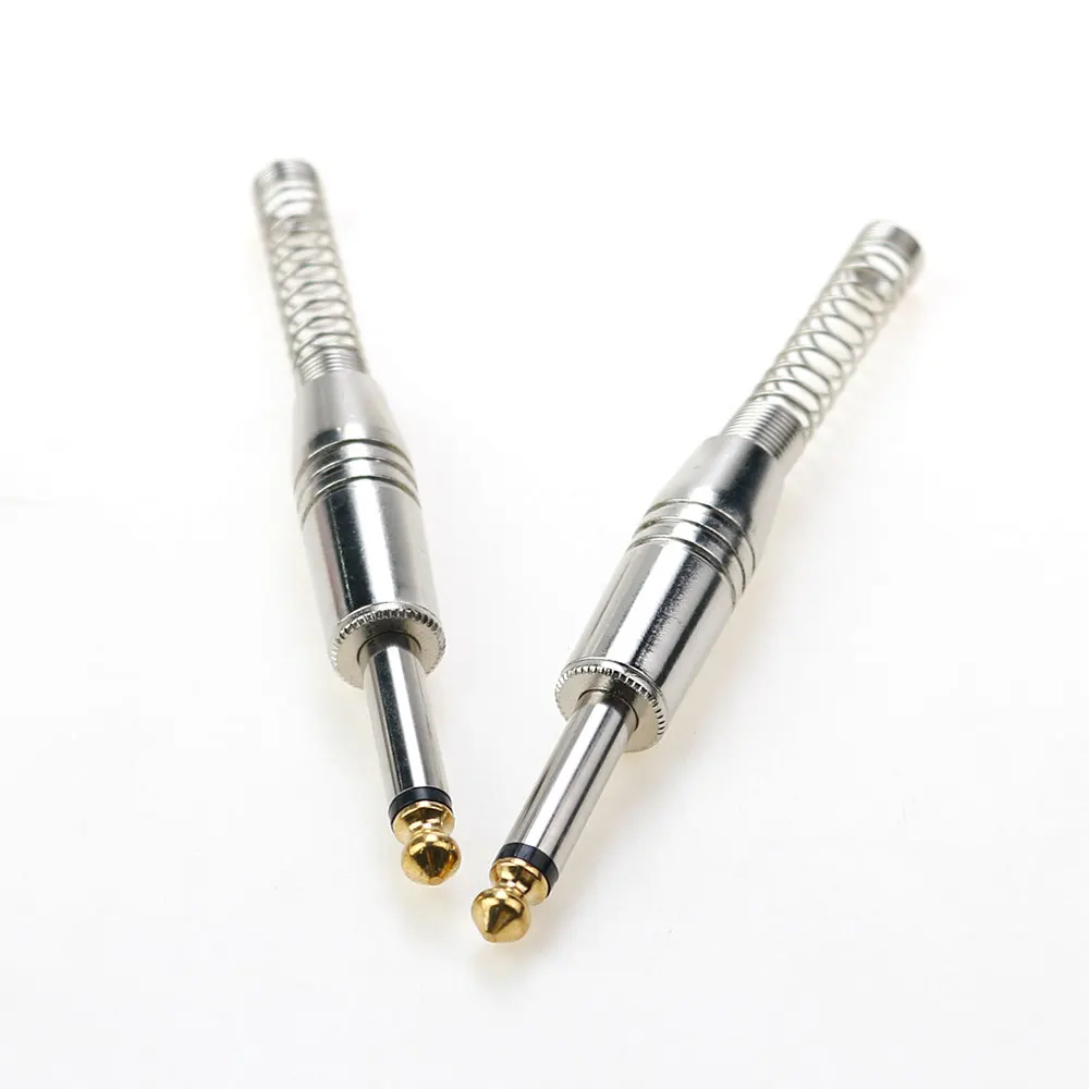 Conector de Audio estéreo Mono de 2 polos de 6,35mm para guitarra conector DIY amplificador micrófono enchufe de soldadura con resorte