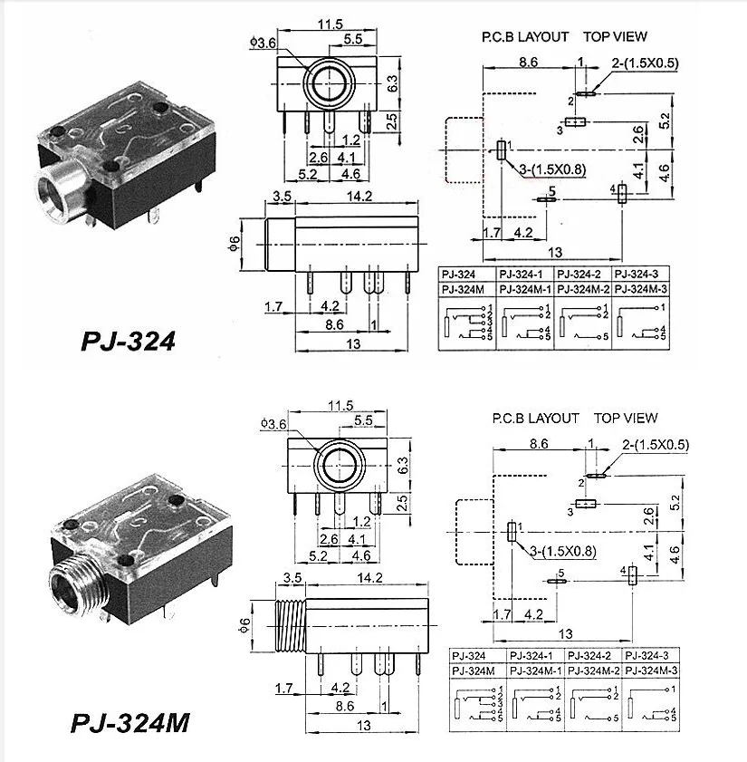 Comprar Conector de Audio estéreo PJ324, 10 piezas, 5 pines, 3,5mm, montaje en Panel PCB para auriculares con PJ-324M de tuerca