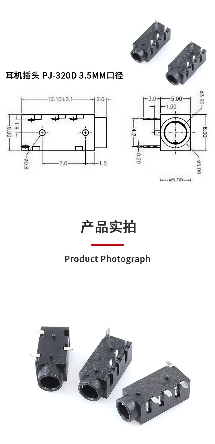 Comprar Conector de Audio hembra SMD DIP para auriculares, conector de 3,5mm, 4 pines, PJ-320 PJ320D, color negro, 10 Uds.
