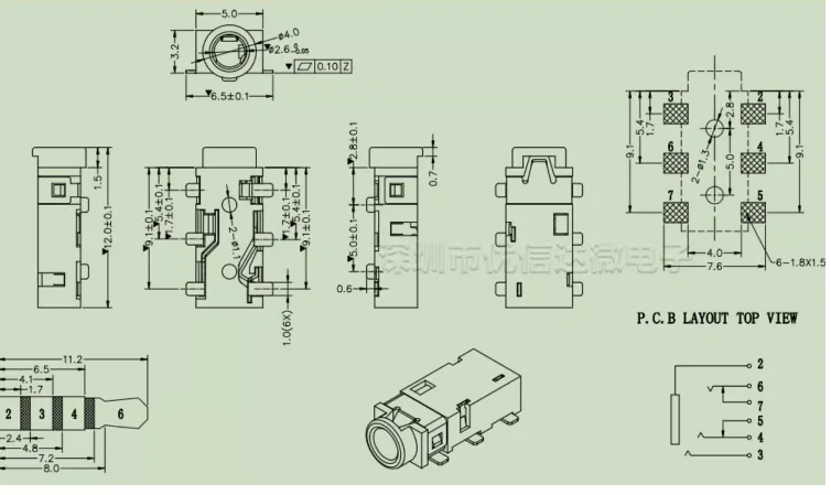 Comprar Conector de Audio hembra SMT SMD para auriculares, 10 piezas, 2,5 MM, 6 pines, PJ-242, chapado en oro, PJ242