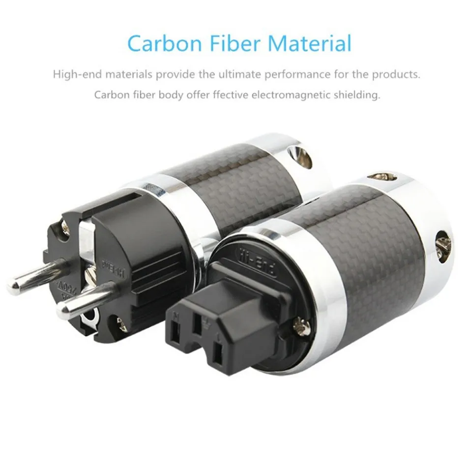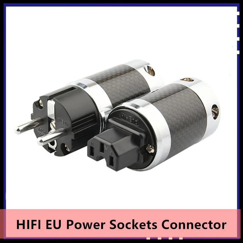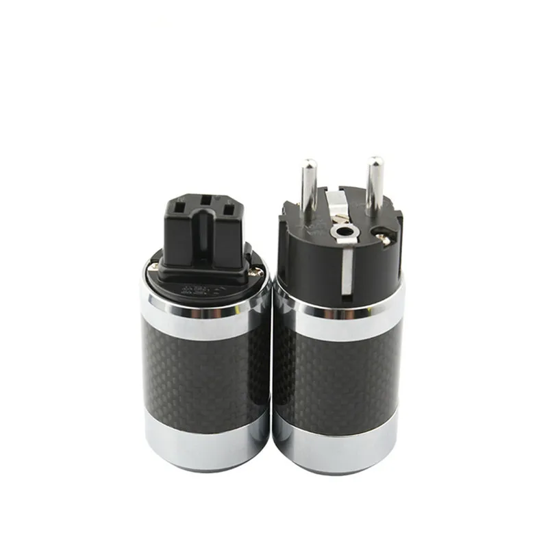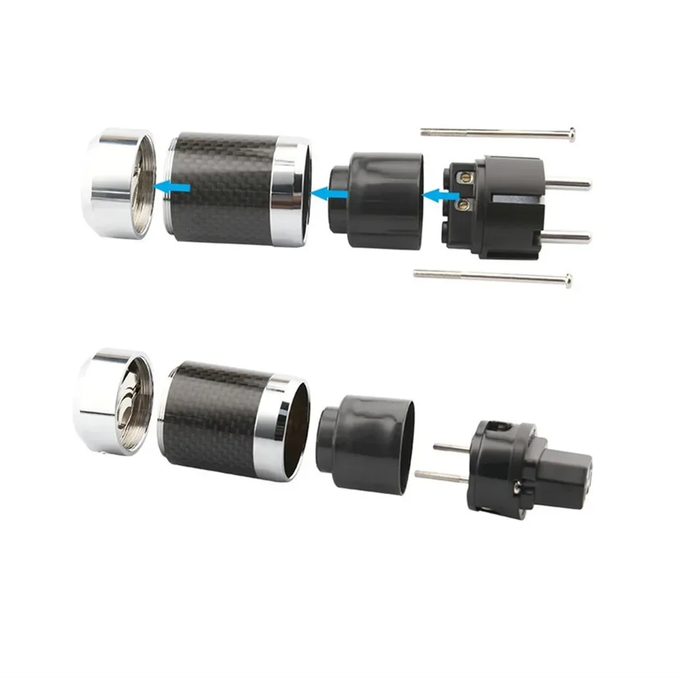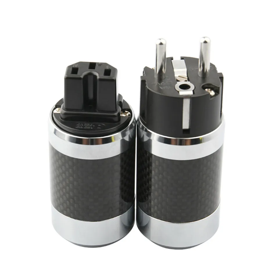 Comprar Conector de Audio macho hembra AC EU, adaptador chapado en rodio de fibra de carbono, enchufes y enchufes eléctricos HiFi IEC Schuko DIY